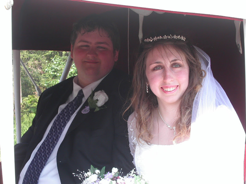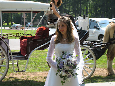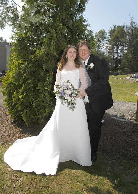 On August 16, 2007, I was married. We got married at the Poconos and two days later had a reception back home. The last picture is my favorite wedding picture and I don't know why. I'm about ready to pass out because it is too hot so my husband is helping me hold my dress up to alleviate some of the 7 lbs of weight from the dress. My maid of honor took the picture while we were walking back to our room to change. I don't have a wedding day post. The rooms didn't have internet. My husband and I joked that what were people to do without internet.