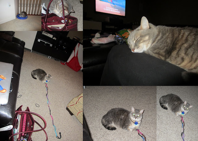 11:05:11 PM - In bed trying to sleep and Poky caught some ponytail holders so she meows until we acknowledge her.