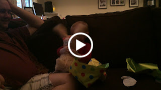 I already wrote about her party! The morning involved a lot of the same with playing and reading but also cleaning. A little bit before the party Dave went out and bought a Happy Birthday Banner. We already had red balloons and we blew 2 up. The banner made it seem way more festive. He also bought party hats.