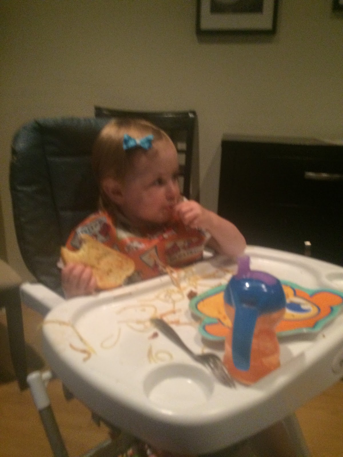 I cooked dinner.  Ella ate so much. She was also so good. It was so so so so so so nice having someone to distract Ella while I was eating. I finished eating before Ella. I never thought I'd see that happen.  Ella did not want to go to sleep.